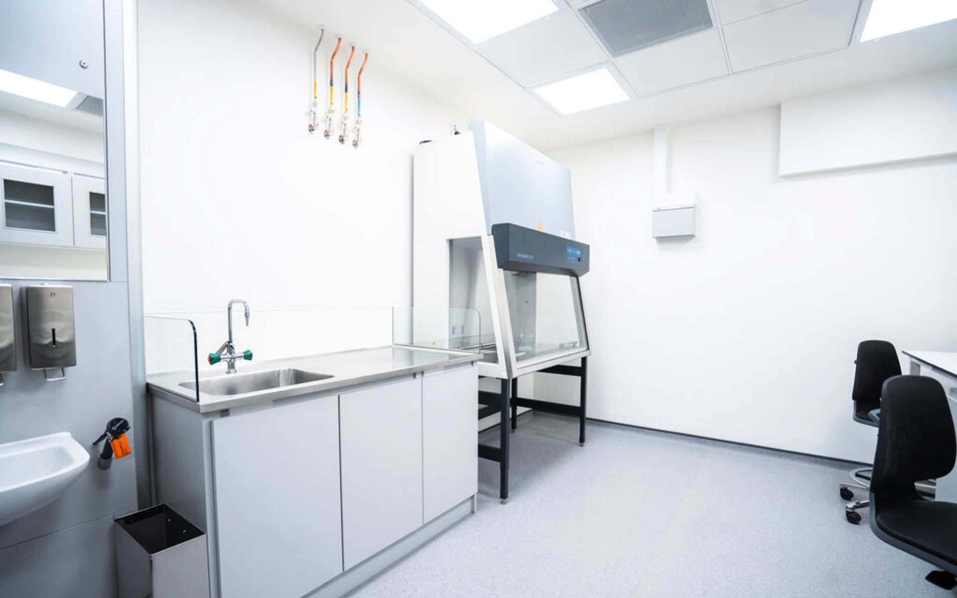 • Comprehensive lab support – Liquid nitrogen supply, media sterilisation, waste management (general and clinical), de-ionised water, lab coat laundry, glassware cleaning